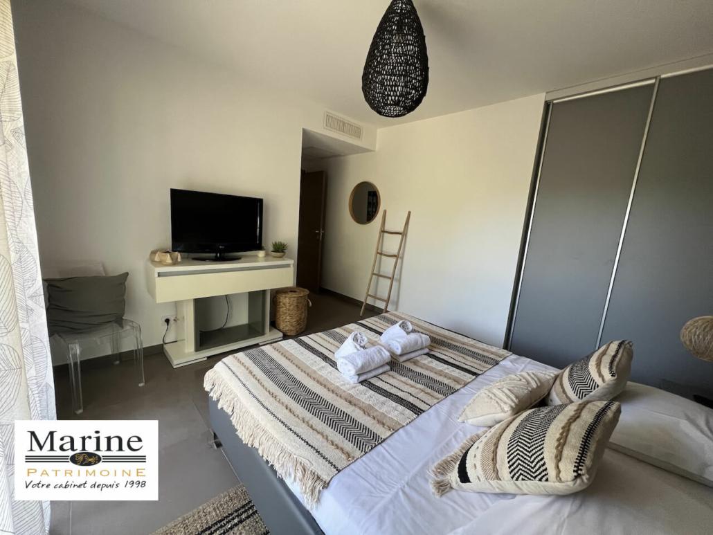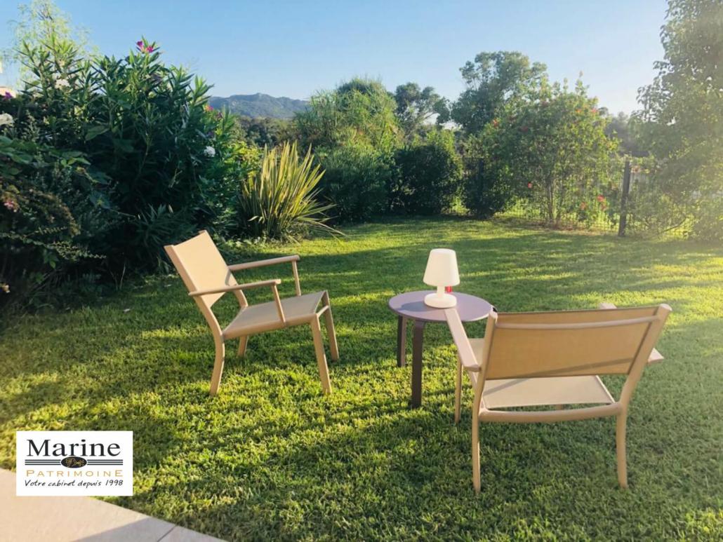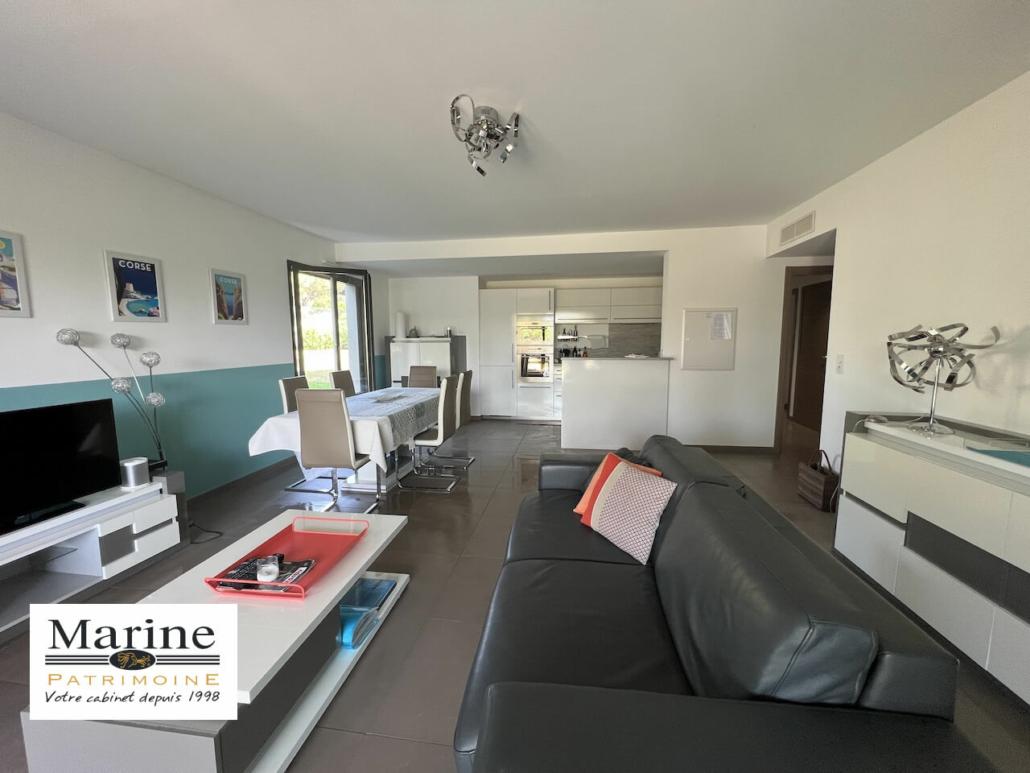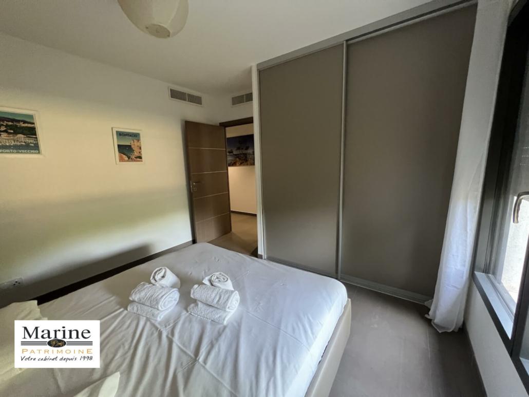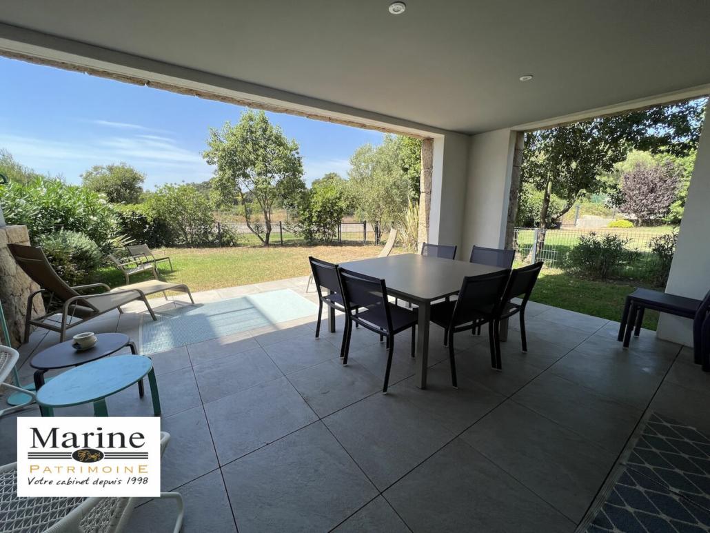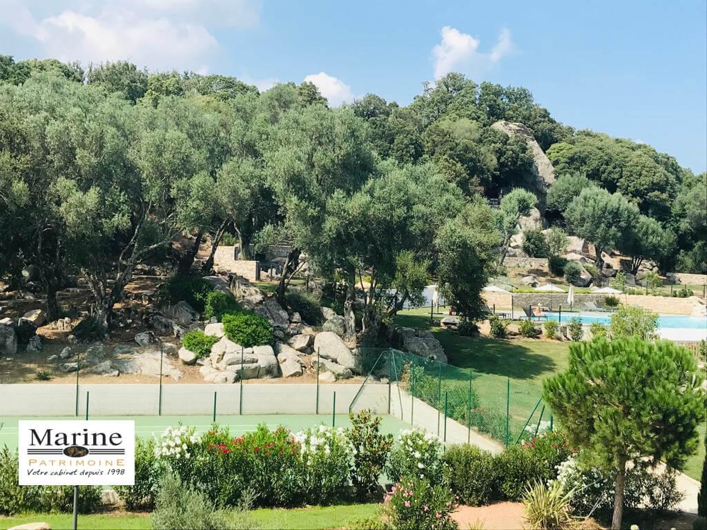 Dans une résidence de standing avec parc paysager, piscine et courts de tennis, à proximité immédiate du centre ville de Porto-Vecchio, à vendre bel appartement 2 chambres, meublé et tout équipé. Le jardinet dans le prolongement de la terrasse couverte est orienté Sud-Ouest avec vue sur une vaste zone agricole. Très belles prestations pour cet appartement vendu avec un box fermé en sous-sol, une cave et une place de parking extérieure. Un bien avec une bonne rentabilité locative, également bien adapté pour une vie à l’année.