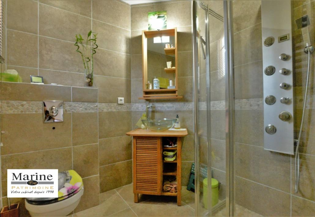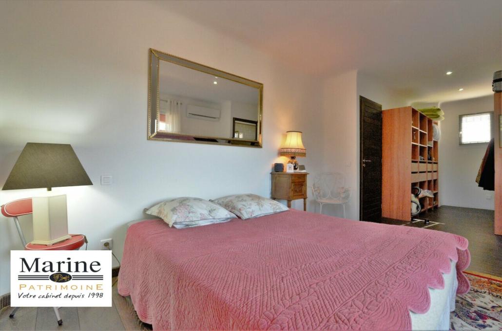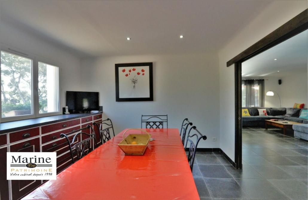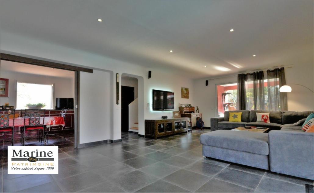 Edifiée sur une parcelle limitrophe avec une zone verte vue montagne, villa moderne de 142 m2, développant 235 m2 de surface plancher avec une très belle pièce de vie de 55 m2 desservant une terrasse couverte en L. Cuisine équipée pouvant astucieusement être fermée par des portes à galandage, doublée d’un cellier/buanderie et accès direct à un grand garage. La villa dispose de trois chambres (dont une en rez de chaussée), avec chacune sanitaires privatifs. La piscine traitée aux sels, 9,5 x 4,5m est équipée d’une pompe à chaleur, bâche de securité. Un pool-house avec four à pizza, plancha et barbecue complète l’espace extérieur. Le terrain de 1050m2 est plat, ne nécessitant pas trop d’entretien.